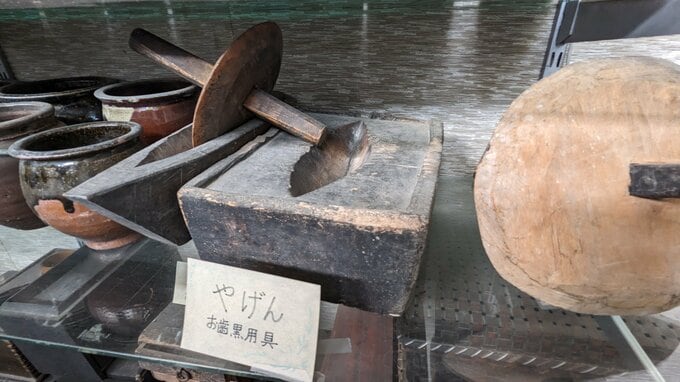 生活用品の展示では、蓄音機やラジオのようなものから、うるしを採る道具、お歯黒の道具など、今ではなかなか見かけないものが並びます。