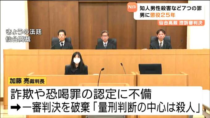 11月6日の控訴審判決で仙台高裁の加藤亮裁判長は、詐欺や恐喝罪の認定に不備があったとし、一審の判決を破棄したうえ「量刑判断の中心は殺人」と指摘。