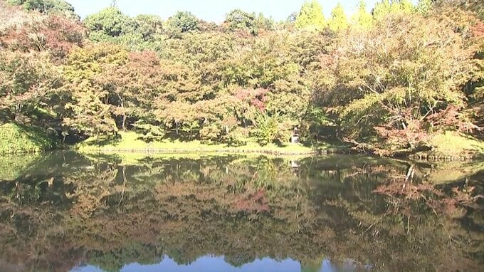 園内にある池の周りにはおよそ500本の広葉樹が植えられています。市によりますと、夏の暑さの影響もあり現在の色づきはまだ2割程度と例年に比べて遅れていますが、ここ数日続いている朝晩の冷え込みで、赤い色合いが日に日に増しているということです。