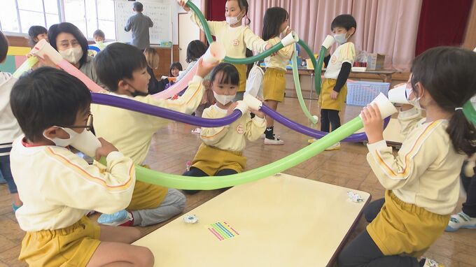 大分市の大在幼稚園では科学に親しみ興味を持ってもらおうと2024年から実験を伴う体験学習を実施しています。