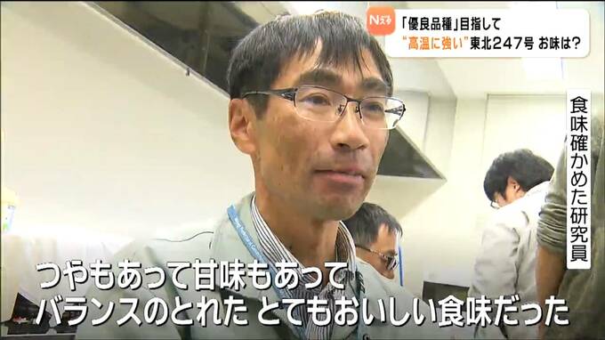 11月6日の食味の調査では、ひとめぼれなどと比べても遜色がないなどと高く評価され、研究員らは新品種誕生への手応えを感じていました。