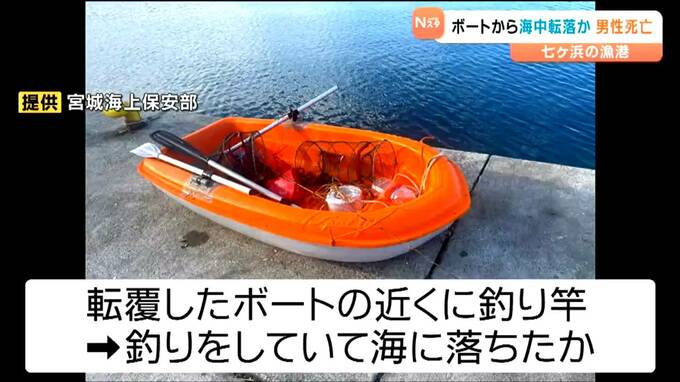 男性は間もなく死亡が確認されました。宮城海上保安部によりますと、転覆したボートの近くで釣り竿が見つかっていることなどから、男性は釣りをしていて海に落ちたとみられています。