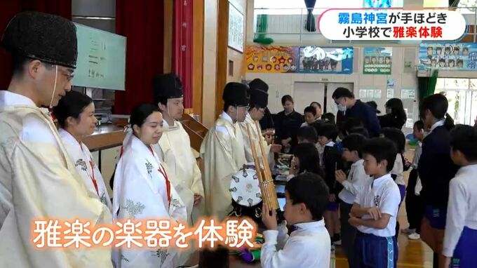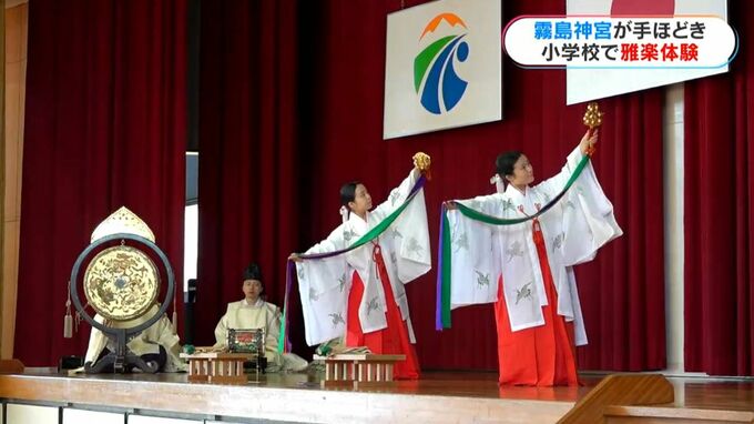 鑑賞会が開かれたのは、全校児童42人の霧島小学校です。4年前から近くの霧島神宮から神主やみこを招き、平安時代から伝わる雅楽の鑑賞会を開いています。