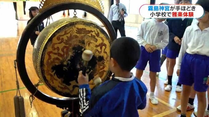 鹿児島県霧島市の小学校で、日本の古典音楽「雅楽」の鑑賞会と演奏体験が行われました。