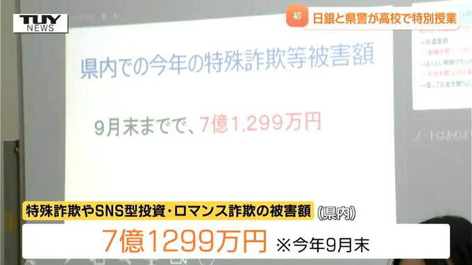 警察によりますと県内で今年確認された特殊詐欺やSNS型ロマンス詐欺の被害額は7億1299万円で、去年の同時期に比べて、およそ3億円増えています。