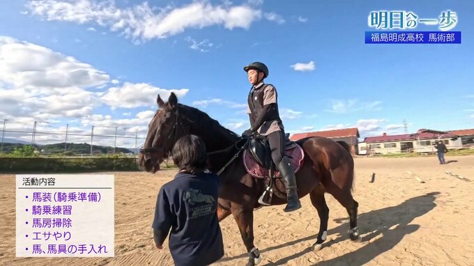 福島明成高校馬術部は創部61年。「福島農蚕(のうさん)高校」時代に発足し、第1回全日本高校馬術競技大会の優勝校でもあります。
