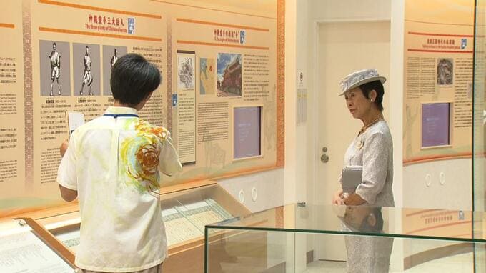 久子さまはその後豊見城市の沖縄空手会館も訪問し、沖縄空手の歴史などを紹介する展示を視察したあと、空手の演舞を観覧されました。