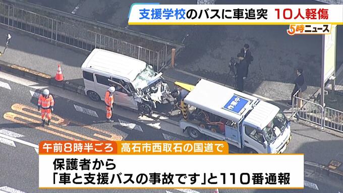 支援学校のバスに軽乗用車が追突。バスに乗っていた児童など10人がけがです。 11月6日午前8時半ごろ、大阪府高石市西取石の国道で、現場に居合わせた保護者から「車と支援バスの事故です」と110番通報が…