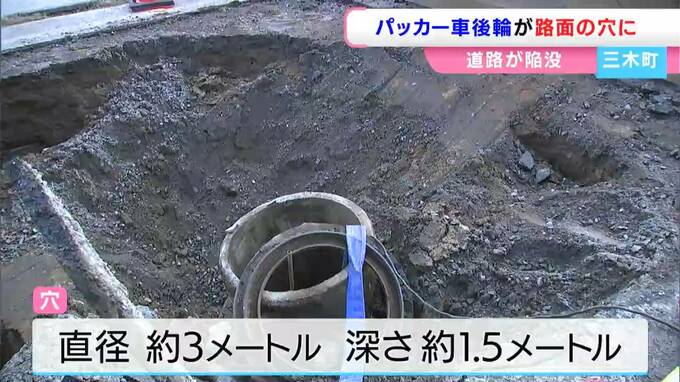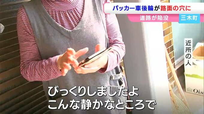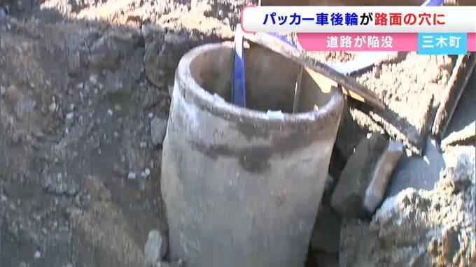警察によりますと、原因は調査中ですが、道路の下に防火水槽があり、その老朽化とパッカー車の重みで崩れた可能性があるということです。