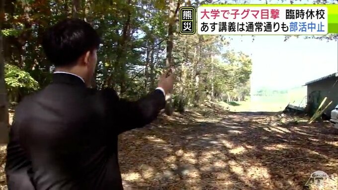 6日朝、キャンパスで子グマ1頭が目撃された青森県八戸市の大学は、学生の安全を確保するため6日を臨時休校とし、部活動は明日7日も中止することを決めました。今野七海 記者「八戸学院大学のサッカー場の前です。…