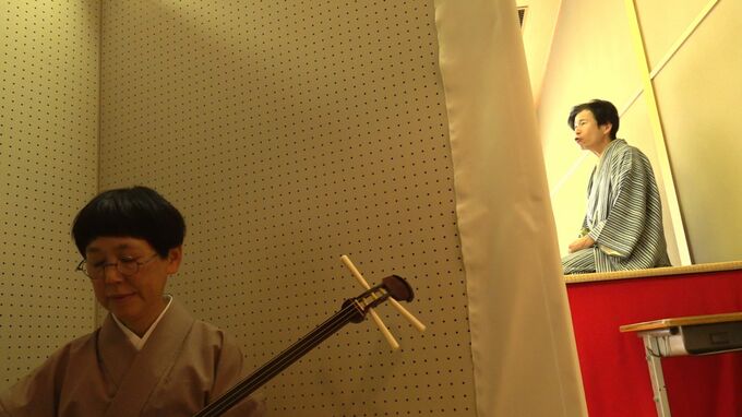 仮設住宅で暮らし、日中は倒壊を免れたガレージで過ごす両親は、娘が落語の道に進んだことに驚いたと話します。