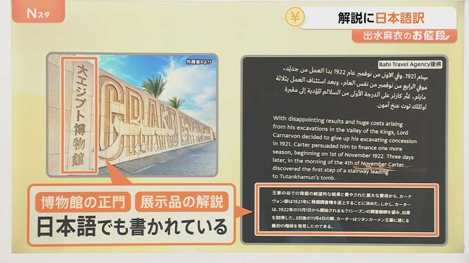 さらに、日本が支援をしたことで、博物館の正門には日本語で「大エジプト博物館」と書かれていて、展示品はアラビア語・英語のほかに日本語でも解説されています。