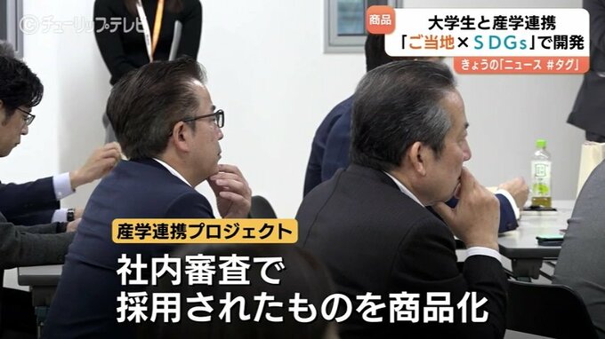 6日は、学生3つのグループが「ご当地×SDGs」をテーマにした商品案を社員に向けてプレゼンしました。