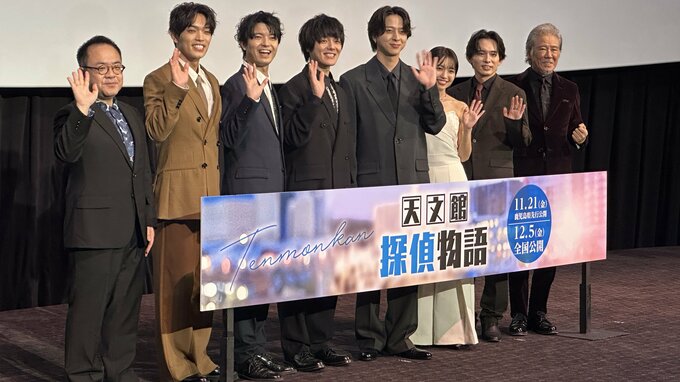 timeleszの寺西拓人さんが主演をつとめる映画「天文館探偵物語」完成披露試写会が行われ、寺西拓人さん(timelesz)、室龍太さん、高田翔さん、原嘉孝さん(timelesz)らが登壇しました。