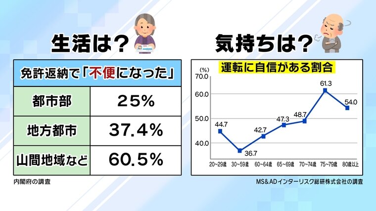 内閣府の調査によると、免許返納で生活が「不便になった」と回答したのは、