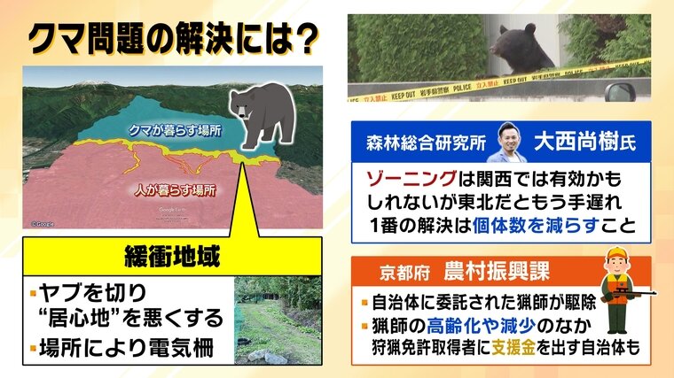 大西氏はこのゾーニングについて、「関西では有効かもしれない」とした一方、「すでにクマが増えてしまった東北だと手遅れかもしれない」と指摘。一番の解決は、個体数を減らすことだといいます。