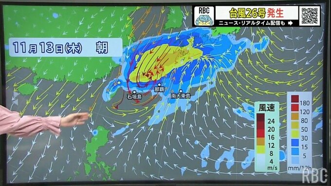 「台風26号は急速に発達しながら南シナ海の方面へと進む予想です。沖縄には接近する前から影響が出てきそうです。9日の日曜日ごろからは太平洋側沿岸の海域で波が高くなりそうです」