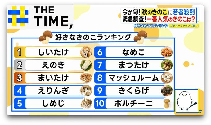 ちなみに、街行く136人に<一番好きなきのこ>を調査したところ堂々の1位は「しいたけ」。焼いた時の香りや食感が好きという声が多く聞かれました。