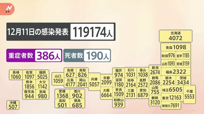 新型コロナウイルスについて、きょう東京都では前の日曜日よりも多い、1万2000人あまりの感染が発表されました。全国ではおよそ11万9000人の感染が発表され、これも前の日曜日を上回っています。厚生労働省により…