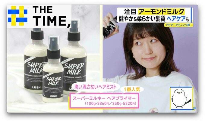 一番人気は、洗い流さないヘアミスト「スーパーミルキー ヘアプライマー」(100g・2860円/250g・5320円)です。