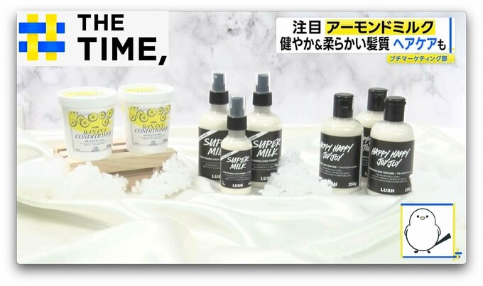 入浴剤などを販売するコスメブランド『LUSH』でも、アーモンドミルクを配合した3種類のヘアケアアイテムを販売。