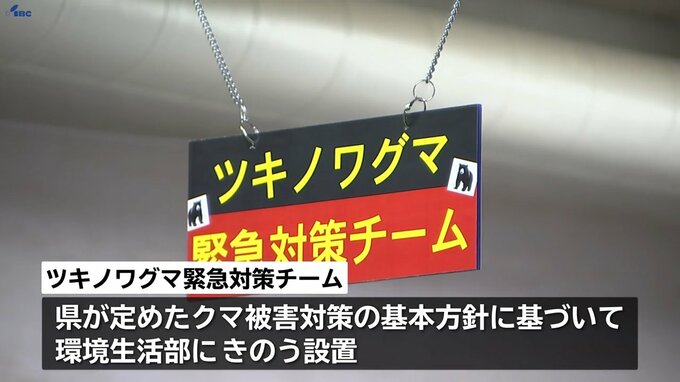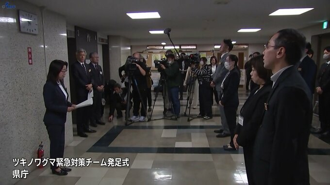 緊急対策チームはおよそ40人で構成し、市町村からの情報収集などにスピーディーに対応するため、県が定めたクマ被害対策の基本方針に基づいて環境生活部に6日設置されました。