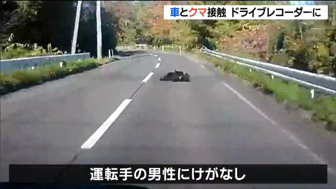 各地でクマの出没が相次ぐ中、11月6日、宮城県川崎町では、走行中の車が道路に飛び出してきたクマと接触しました。