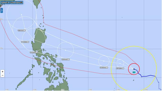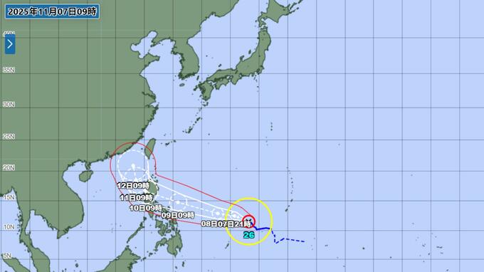 台風26号はフィリピンの東を北西へ進んでいます。今後非常に強い勢力に発達し、進路を北に変える見込みです。日本に近づく可能性もあります。最新の情報に注意してください。