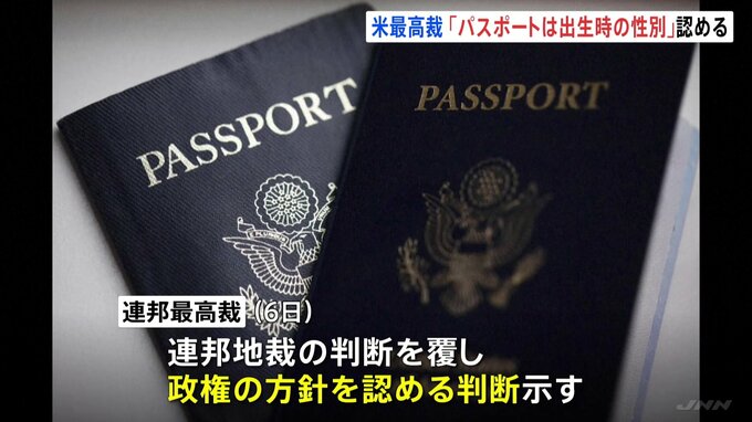 アメリカの連邦最高裁は、パスポートに記載する性別を出生時の男性か女性に限定するとしたトランプ政権の方針を認める判断を示しました。トランプ政権は1月、パスポートの「性別」について、申請者の自己申告では…