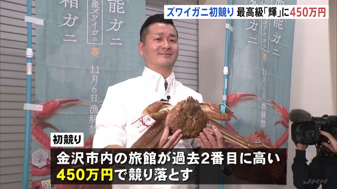 きのう解禁されたズワイガニ漁。石川県産のオス「加能ガニ」の中でも、最高級品は「輝」のブランド名で出荷されます。昨夜の初競りでは、能登の珠洲市で水揚げされた重さ1.7キロを超えるカニが「輝」に認定され、…