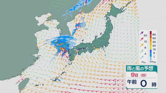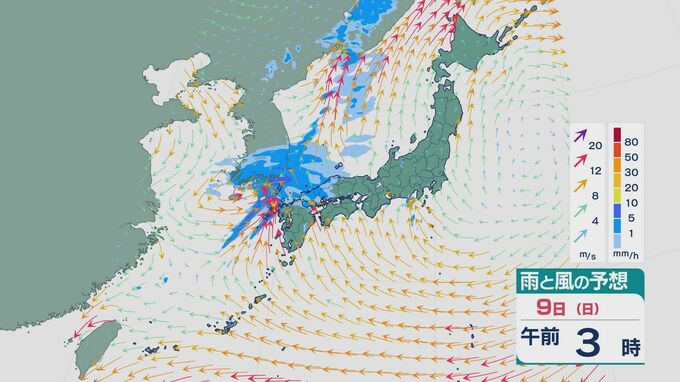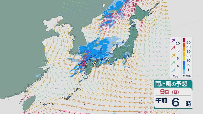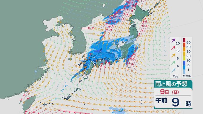 週末は低気圧や前線が西から東へ進む見込み 9日(日)は九州から北海道まで雨の降る天気に 洗濯や外出はできれば土曜日に 雨と風シミュレーション 北陸放送 2025年11月7日(金) 16:42 国内 9日の雨と風の予想ですが、低気圧の接近にともない昼前にかけて九州から東海・北陸まで雨雲が広がるでしょう。関東でも湿った空気の影響を受けそうです。