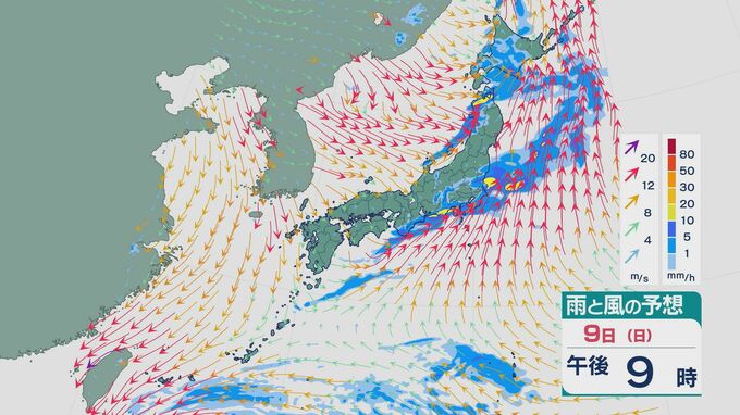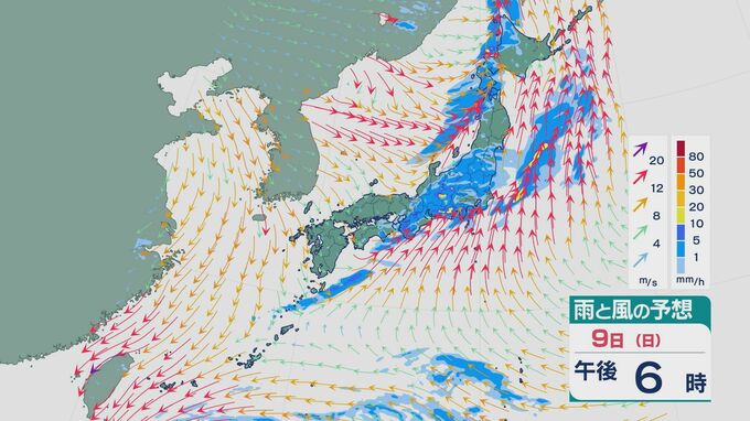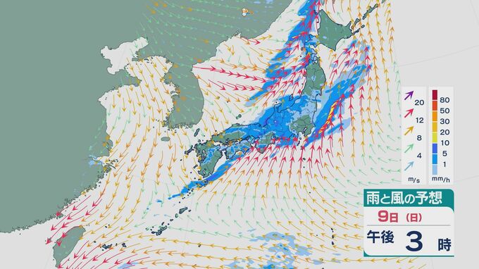 週末は低気圧や前線が西から東へ進む見込み 9日(日)は九州から北海道まで雨の降る天気に 洗濯や外出はできれば土曜日に 雨と風シミュレーション 北陸放送 2025年11月7日(金) 16:42 国内 9日の昼過ぎからは関東などでも雨が本格的に降るでしょう。沿岸部で雨が強まりそうです。また沿海州付近にも低気圧が発生し、寒冷前線が通る東北の日本海側でもまとまった雨が降りそうです。