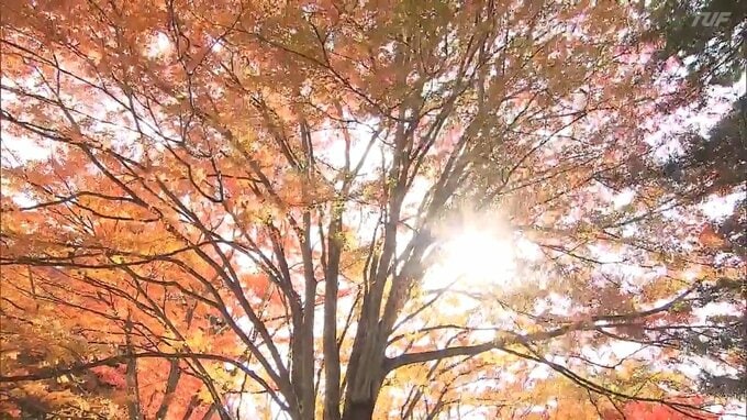 猪苗代町の土津神社では、いま、紅葉の見頃を迎えています。秋晴れの中、穏やかな日差しを浴びて、鮮やかさを増すモミジ。今年は猛暑の影響で、例年より1週間ほど遅い色づきとなりました。