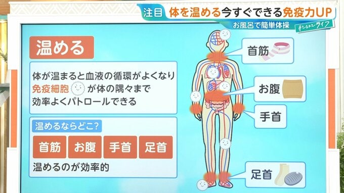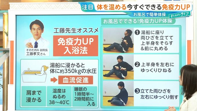 さらに免疫力を高める、湯船の中で出来る簡単な体操がこちら。