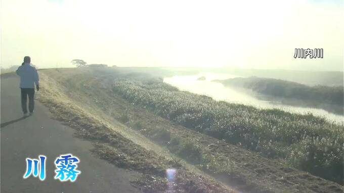 また冷え込みの影響で、平野を流れる川内川からも、霧がわき上がり、幻想的な風景となりました。