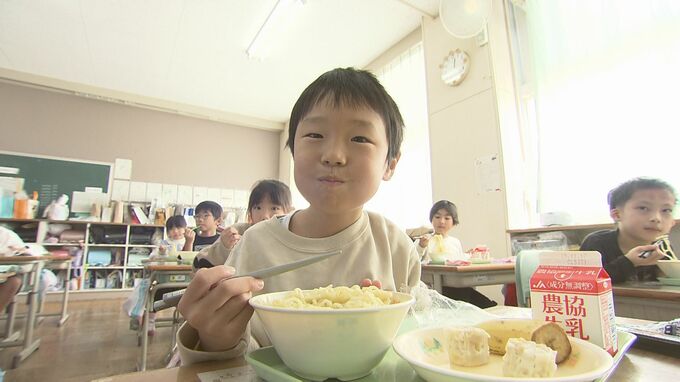 いわき市四倉町の大浦小学校で、給食の時間、子どもたちがおいしそうに食べているのは…。