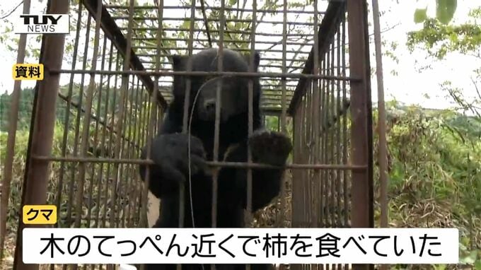 クマは木のてっぺん近くで木になっていた柿を食べていたということです。