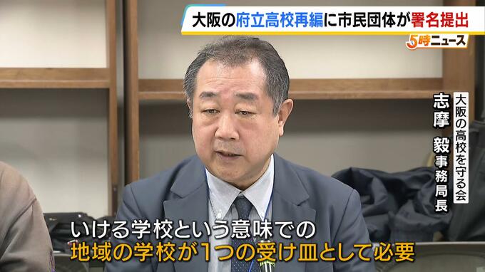 大阪府が府立高校再編を進めるなか、市民団体が存続を求めて署名を提出しました。 府立高校の存続などを求め、市民団体は7日午後、大阪府教委に8000筆以上の署名を提出しました。(大阪の高校を守る会・志摩…