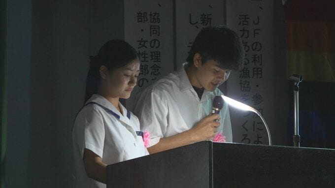 この後、「漁業士」の認定証授与式が行われ、モズクの養殖やマグロの一本釣りを行う伊関亜里砂さんが、県内で初めて女性の漁業士として認定されました。
