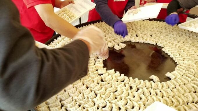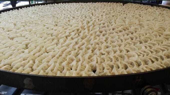 直径1メートル30センチで一度に1000個の餃子を焼くことができます。