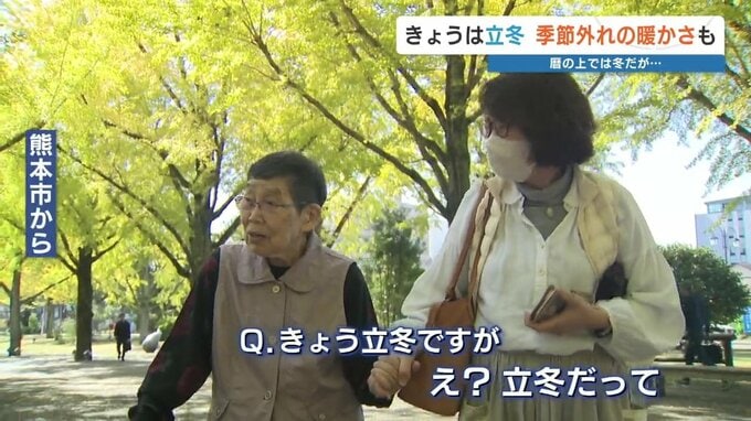 森明子気象予報士「熊本市ではイチョウの葉が色づいてきていますが、まだ冬にはほど遠い気温です。日が当たると少し暑さを感じます」