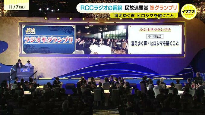 日本民間放送連盟賞の表彰式が、7日名古屋市で行われ、RCCが制作した番組がラジオ番組部門の準グランプリに選ばれました。ラジオ番組部門で準グランプリになったのは、去年8月6日に放送した「消えゆく声 ヒロシマ…