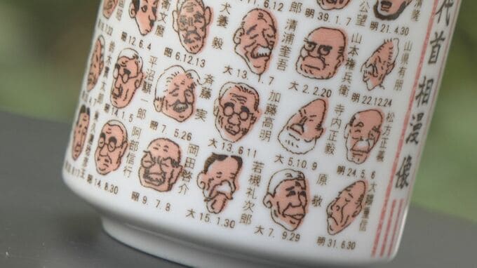 岐阜県土岐市の山志製陶所。こちらでは新たな総理が誕生するたびに、デザインを更新した歴代総理の似顔絵湯のみを作ってきました。