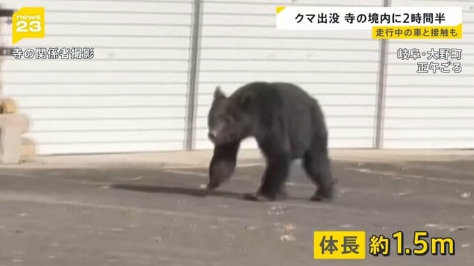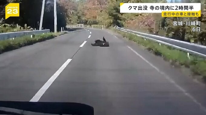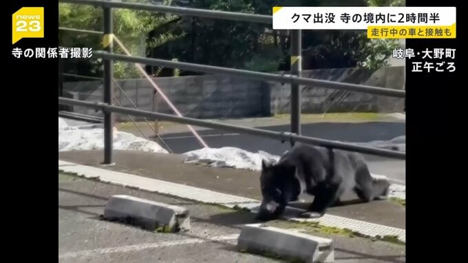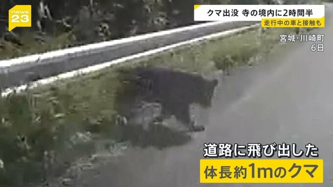 相次ぐクマ出没 寺の境内に2時間半居座る 走行中の車と接触も