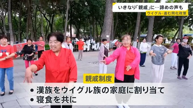 「親戚制度」とは人口の9割を占める漢族をウイグル族の家庭に割り当て、まるで家族の一員のように、家で一緒に食事をしたり寝泊まりをすることで、ウイグル族を監視するとともに中華民族の一員としての意識を植え付ける政策です。