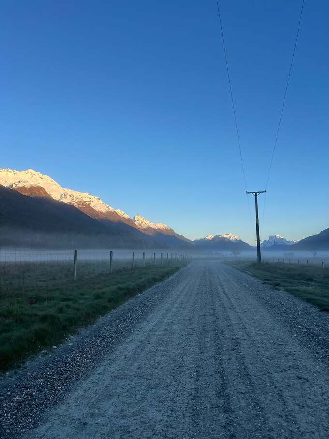 井上さんは、雪をかぶる険しい山脈を背にしたカフェで、現地の方と軽食を共にしている2ショット写真を投稿。さらに、飛行機の窓から撮影したと思われる氷河湖や、湖の向こう側のそびえる雪の山脈、湖畔に佇む水鳥や、荒野を走る未舗装路など、情感あふれる自然の光景を投稿しています。