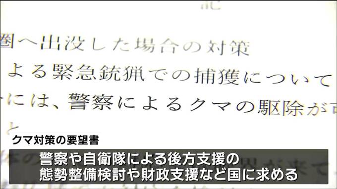 要望書では、市民の安全を確保するため警察や自衛隊による後方支援を含めた広域での対応の検討や財政支援などを国に求めています。