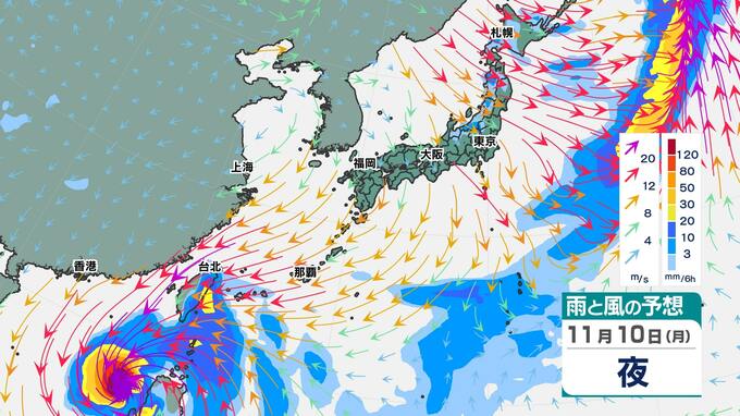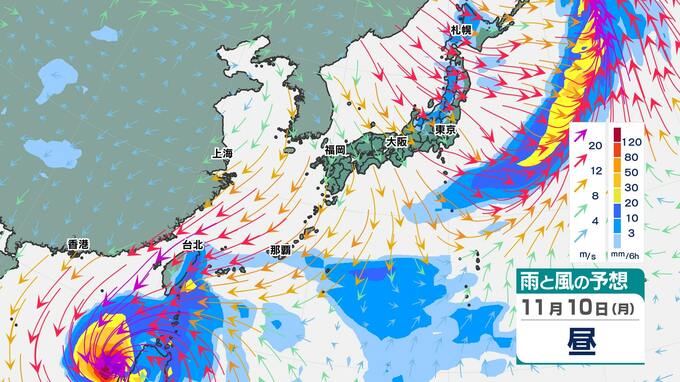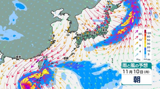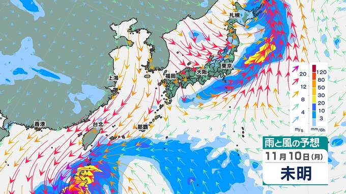 9日(日)から10日(月)に台風25号の爪痕が残るフィリピンに上陸して、南シナ海に進みます。南シナ海でも「反時計回りの渦」はハッキリしていますが、台湾に近づく13日(木)になると、「反時計回りの渦」は崩れ、だんだんと不明瞭になってきます。『雨雲のかたまり』も南の海上に限られ、今までの予想よりも本州に影響する可能性は小さくなったと言えそうです。