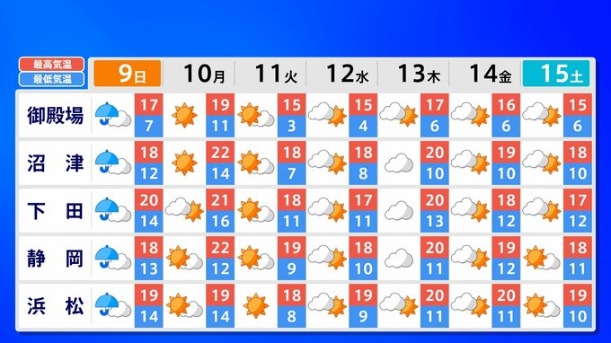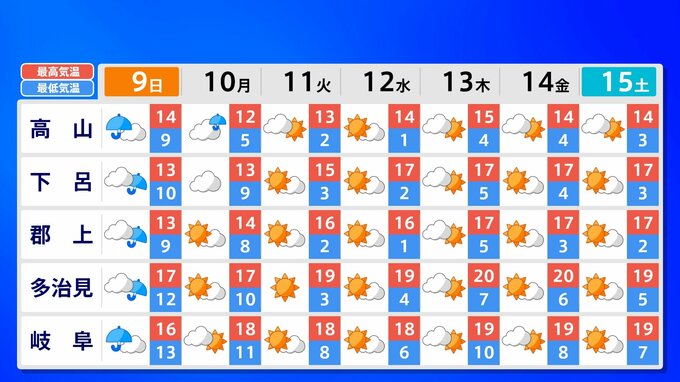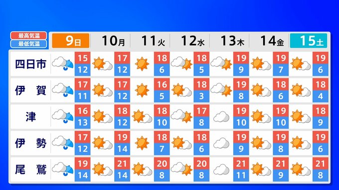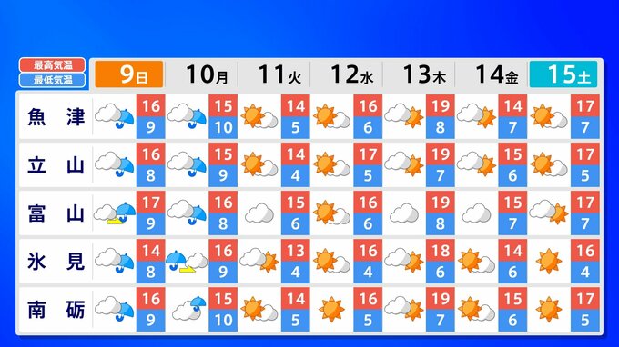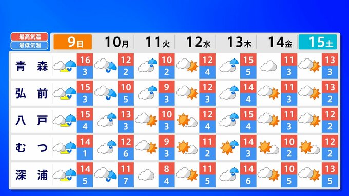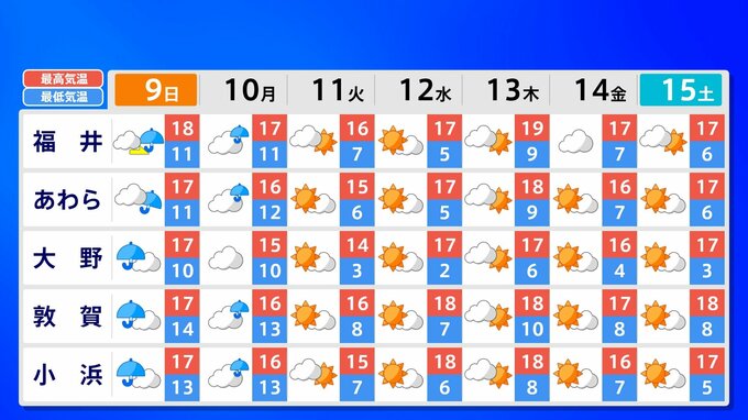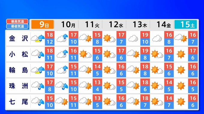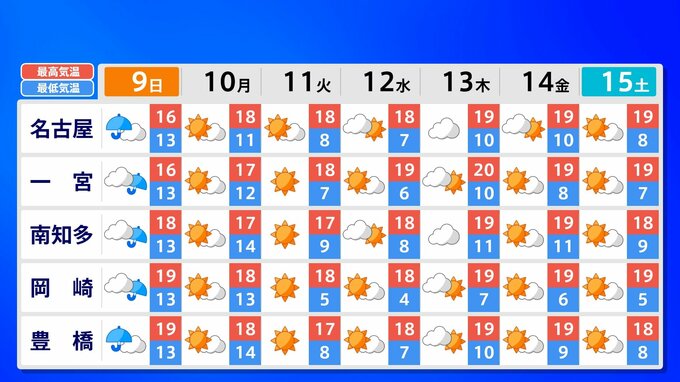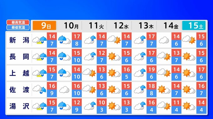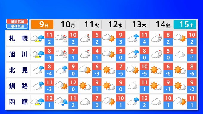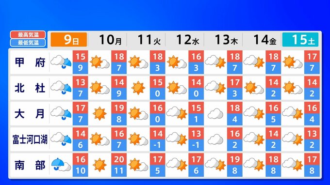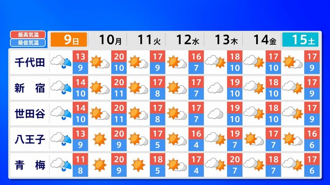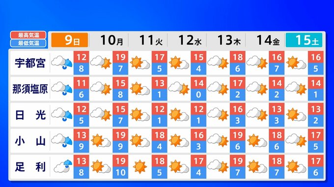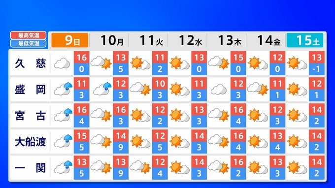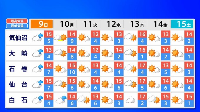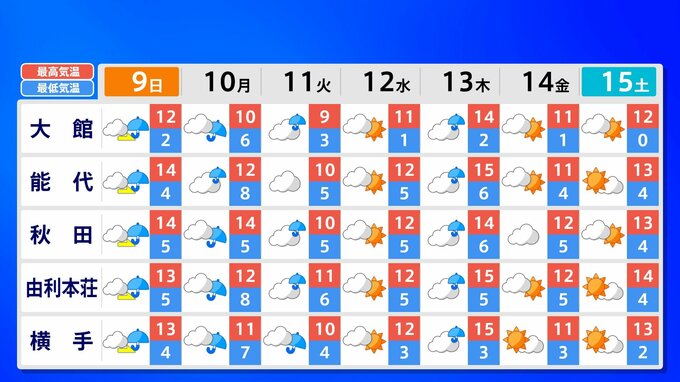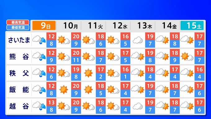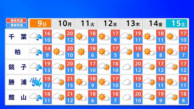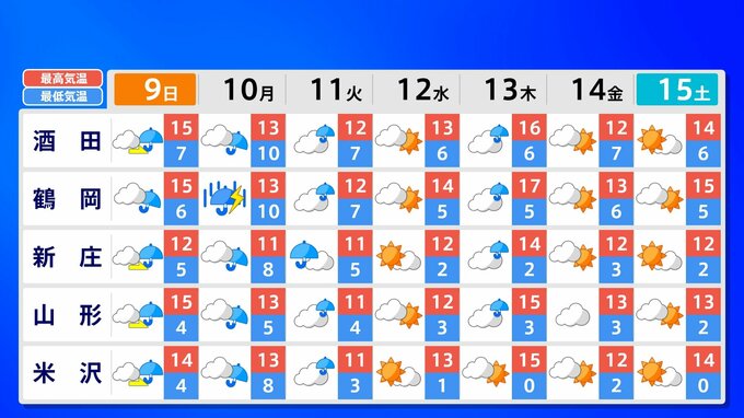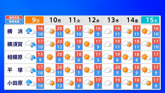 全国各地の来週15日(土)までの週間予報を画像で掲載しています(各県5か所ずつ)。9日(日)は低気圧が前線を伴って列島を通過するため、広く雨が降るでしょう。台風26号が持ち込んだ雨雲の影響で、13日(木)は沖縄奄美や九州南部は、大雨のおそれがあります。