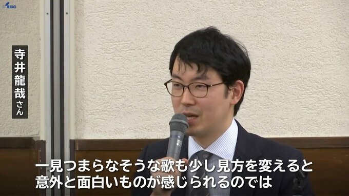 寺井さんは正岡子規の歌などを例に挙げながら、病床で詠んだ歌だということを知っていると印象が大きく変わると話し、短歌の楽しみ方を伝えていました。